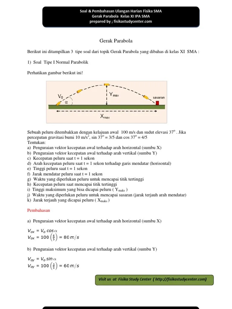 Didalamnya terdapat rumus yang digunakan untuk menyelesaikan contoh soal gerak parabola yang ada. Contoh umum gerak parabola adalah gerak . Adalah gerak yang membentuk sudut tertentu terhadap bidang horizontal. Pada gerak parabola, gesekan udara diabaikan, dan gaya yang bekerja hanya gaya berat atau percepatan gravitasinya saja. January 20, 2021 post a comment.
